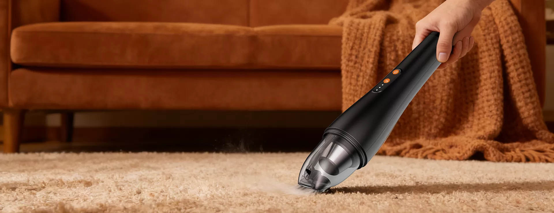 It's ideal for quick cleanups in cars, sofas, stairs, and tight spaces.